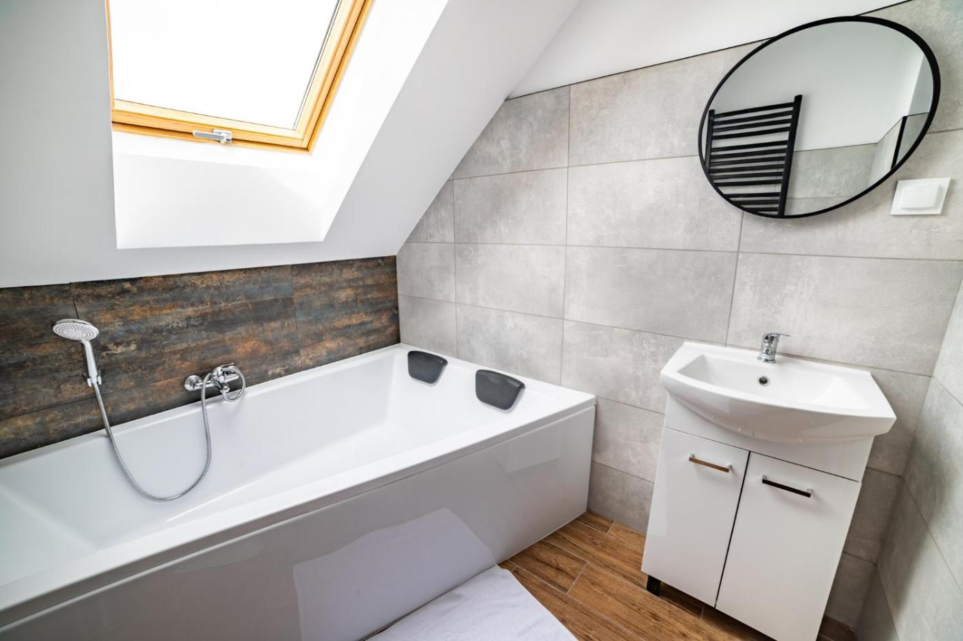Apartament z 1 sypialnią. Boasting a private entrance, this apartment comes with 1 living room, 1 separate bedroom and 1 bathroom with a bath and a hairdryer. Guests will find a stovetop, a refrigerator, kitchenware and a microwave in the well-equipped kitchen. The apartment also includes a barbecue. The apartment features a tea and coffee maker, a dining area, a wardrobe, a flat-screen TV with satellite channels, as well as garden views. The unit has 3 beds. Apartament - 4 osobowy. Powierzchnia pokoju ok.: 56 mkw.