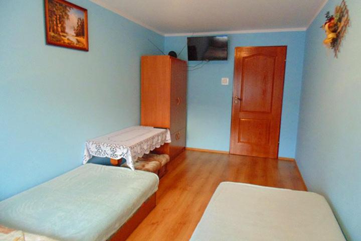Pokój trzyosobowy. The triple room has a shared bathroom fitted with a bath and a shower. The triple rooms kitchen, which features a refrigerator and kitchenware, is available for cooking and storing food. This triple room features a flat-screen TV. The unit has 2 beds. Pokój Trzyosobowy - 3 osobowy. Powierzchnia pokoju ok.: 15 mkw.