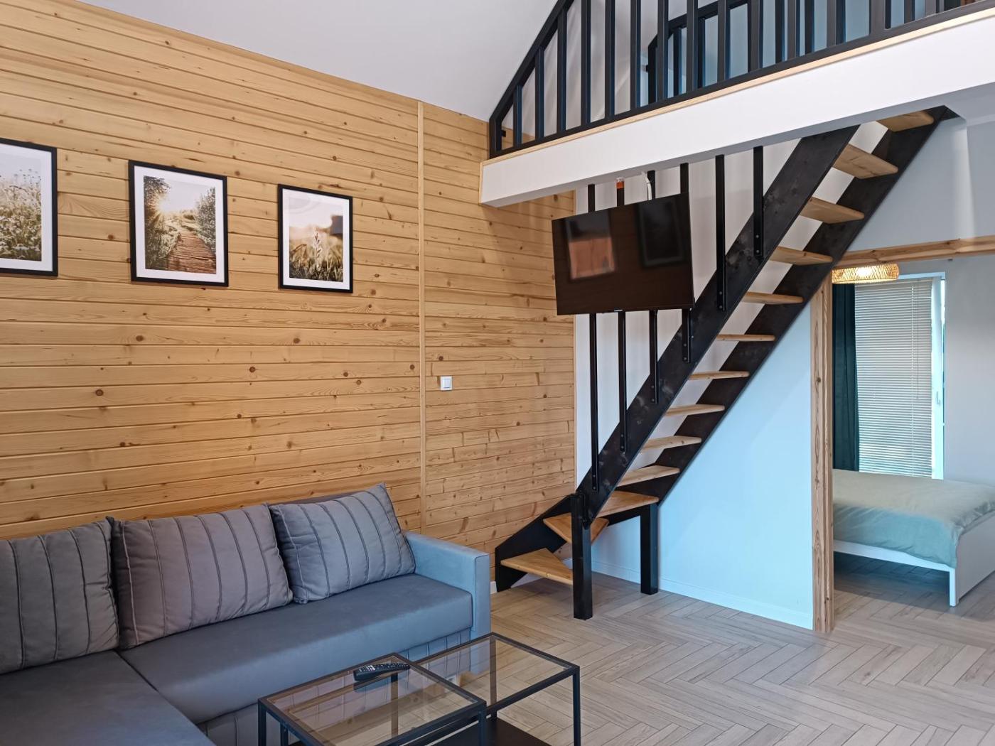 Domek z 2 sypialniami. This air-conditioned chalet includes 1 living room, 2 separate bedrooms and 1 bathroom with a shower. Guests will find a stovetop, a refrigerator, a dishwasher and kitchenware in the kitchen. The chalet also features a barbecue. Boasting a terrace with garden views, this chalet also offers a tea and coffee maker and a flat-screen TV. The unit has 4 beds. Domek - 5 osobowy. Powierzchnia pokoju ok.: 50 mkw. ;