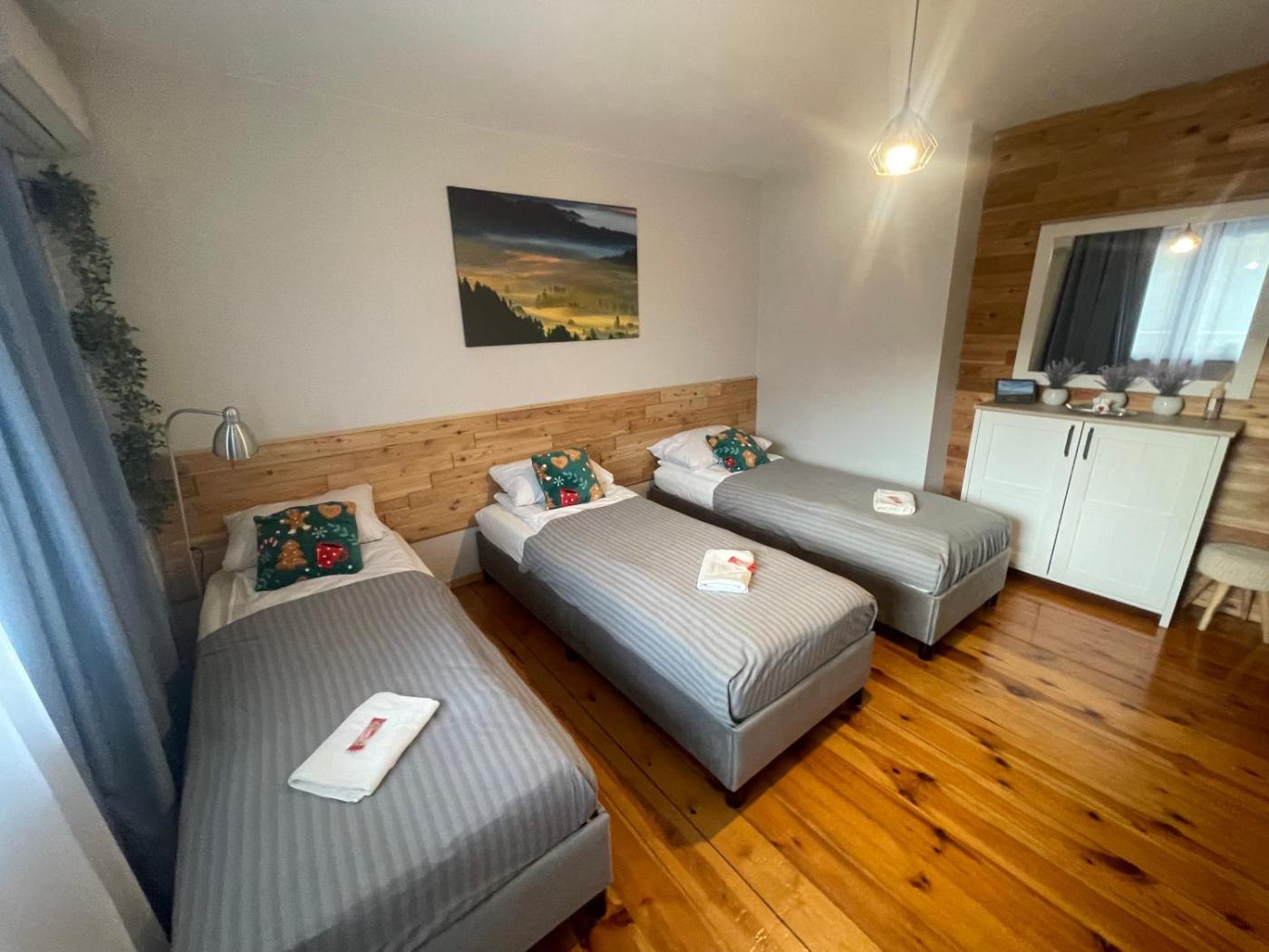 Apartament z 2 sypialniami. This spacious apartment comes with 1 living room, 2 separate bedrooms and 1 bathroom with a shower and a hairdryer. Guests can make meals in the kitchen that features a stovetop, a refrigerator, a dishwasher and kitchenware. The air-conditioned apartment features a flat-screen TV with streaming services, a washing machine, a tea and coffee maker, a seating area as well as garden views. The unit has 7 beds. Apartament - 8 osobowy. Powierzchnia pokoju ok.: 70 mkw. ;